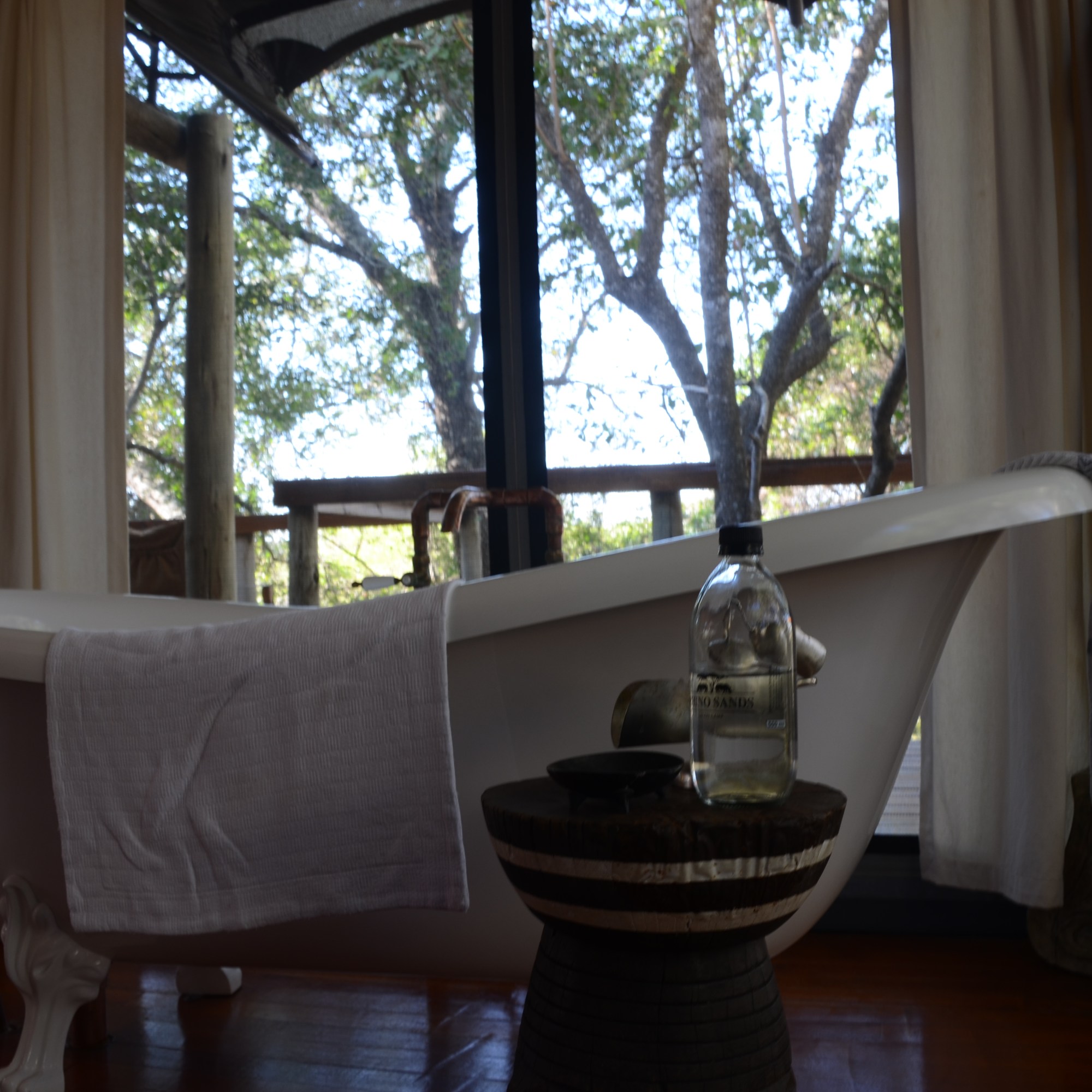 And now the most precious thing about Rhino Sands. The lodge is one of the most luxurious and simultaneously most eco friendly lodge we’ve ever been to. The tents are fully incorporated into its environment. Each and every single tree, bush and branch was allowed to keep its destined place. Unseen for visitors, the lodge has its own solar panels providing enough energy to run the lodge mainly on renewable energy. The water provided for the guests is bottled in glas instead of plastic. This all has been done in love for the African bush and its animals.